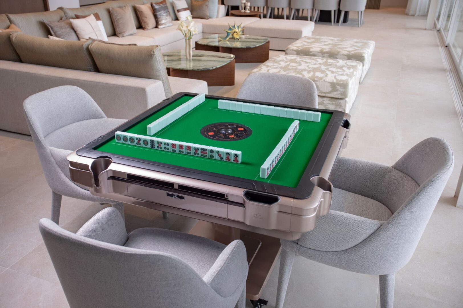 The villa’s grand living and dining area opens directly to the terrace, offering panoramic views of the Andaman Sea. A pool table and mahjong set add to the leisurely atmosphere, while the TV and multipurpose room caters to entertainment lovers with a 75-inch Smart TV, gaming consoles, and karaoke facilities.