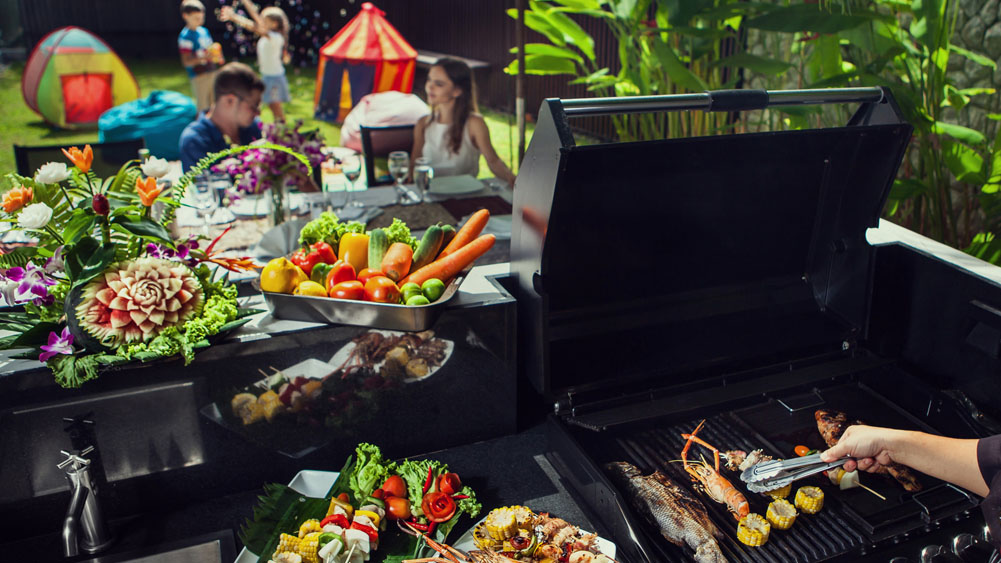 Indoor and outdoor dining options with built-in barbecue facilities.